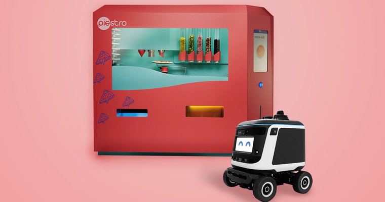 키위봇(KiwiBot)과 피에스트로(Piestro)가 손잡고 피자 제조부터 배송까지 무인으로 운영하는 시스템을 선보임.