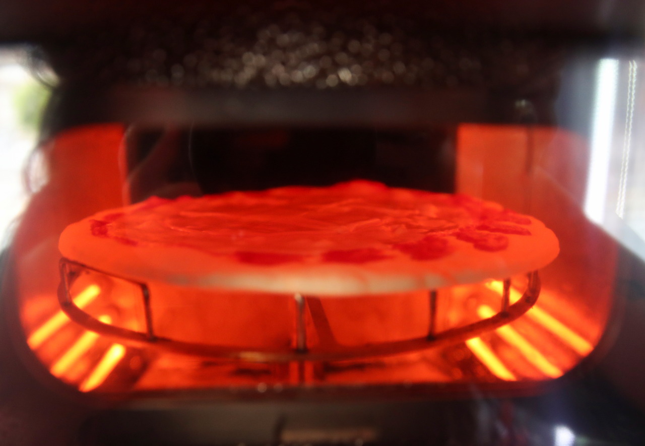 피자를 선택하고 결제하면 작은 창을 통해 피자가 구워지는 모습을 볼 수 있다.